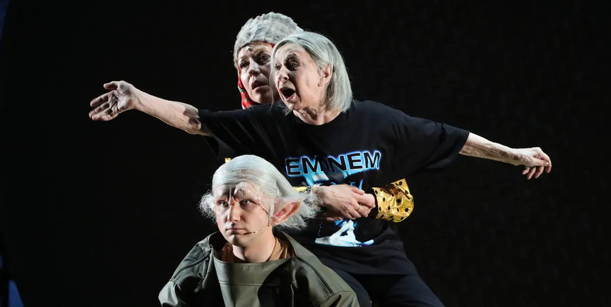 In the play, Akhedzhakova plays Nuria, a gray-haired grandmother who wears an oversized Eminem t-shirt. Her grandson goes off to war, and she doesn’t expect him to return.