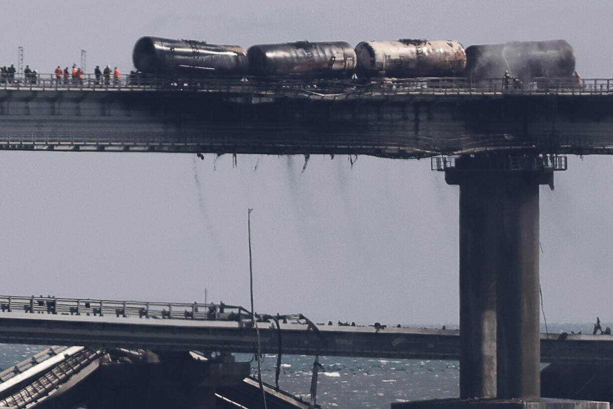 Утром 8 октября на Крымском мосту, по версии СК РФ, взорвалась фура. На одной из веток автомобильной части моста разрушены три пролета. Кроме того, загорелся состав с цистернами на железнодорожной части моста. Пожар повредил более километра железнодорожных путей (при длине моста около 19 километров). Источники американских и украинских СМИ сообщили, что за взрывом стоят спецслужбы Украины (официально Киев это не подтверждал).