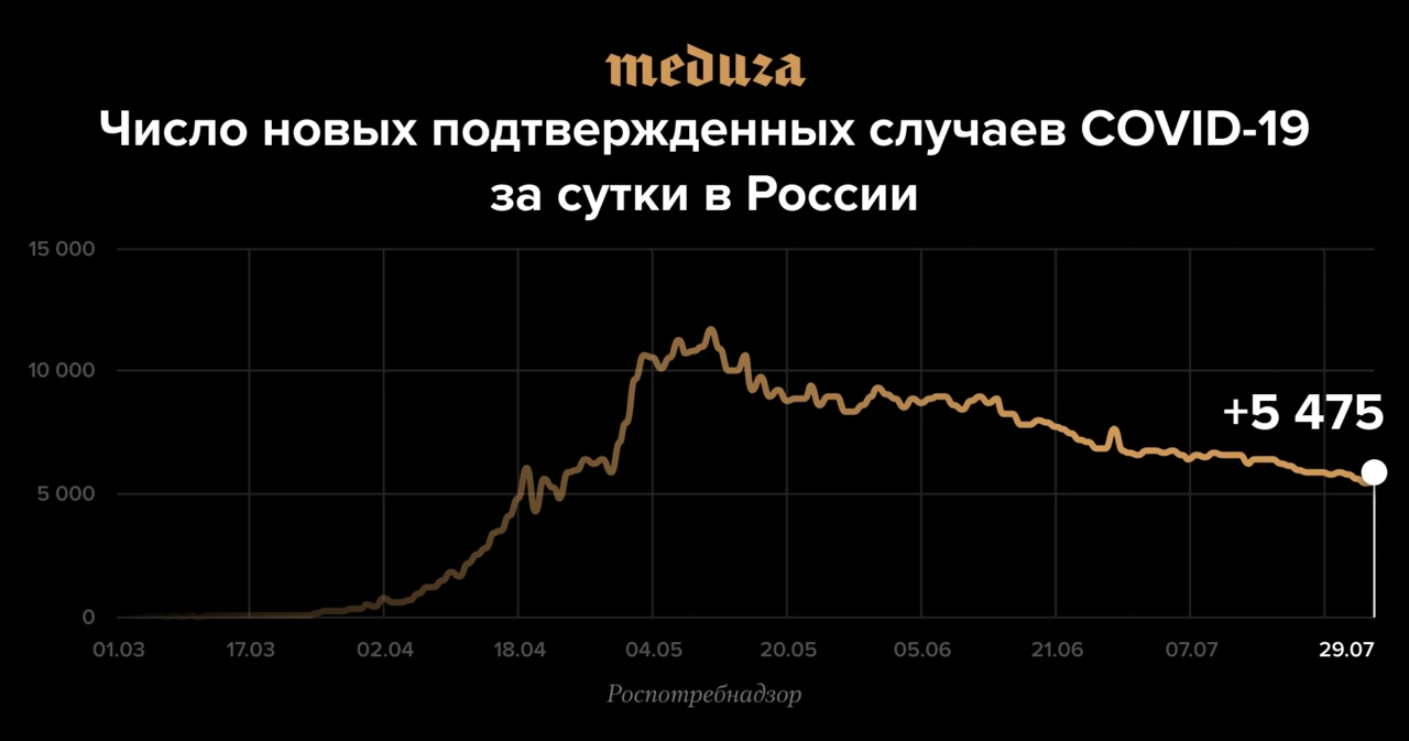 Общее число инфицированных коронавирусной инфекцией в России достигло 828 990 человек. По состоянию на утро 29 июля в России зарегистрированы 5475 новых случаев заражения COVID-19, сообщает оперативный штаб по борьбе с вирусом.