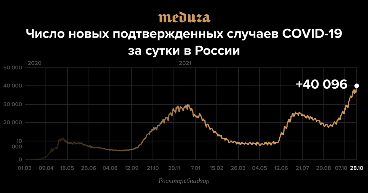 По состоянию на утро 28 октября в России зарегистрированы 40 096 новых случаев заражения коронавирусной инфекцией, сообщает федеральный оперштаб. Это новый суточный максимум с начала пандемии.