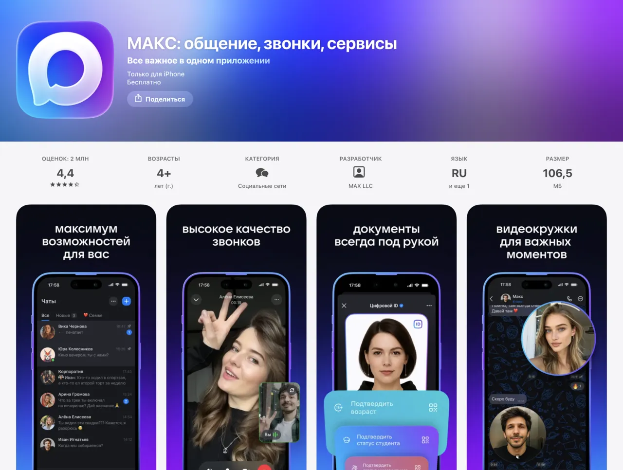 «Национальный мессенджер» Max переименован. В магазинах приложений App Store и Google Play он теперь называется «Макс».