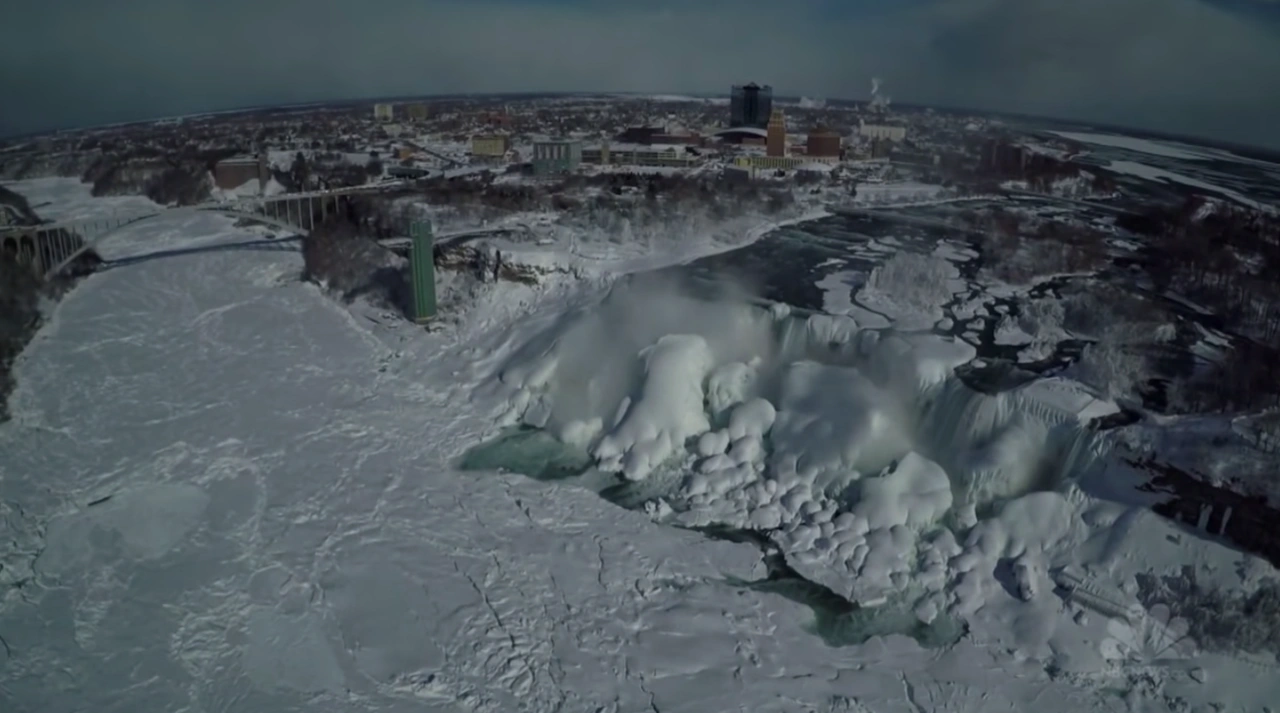 Канадец Брент Фостер снял с беспилотника Ниагарский водопад, который почти замерз из-за аномально холодной зимы (в США сейчас самый холодный февраль с 1896 года). Ролик сделан по заказу телеканала NBC.