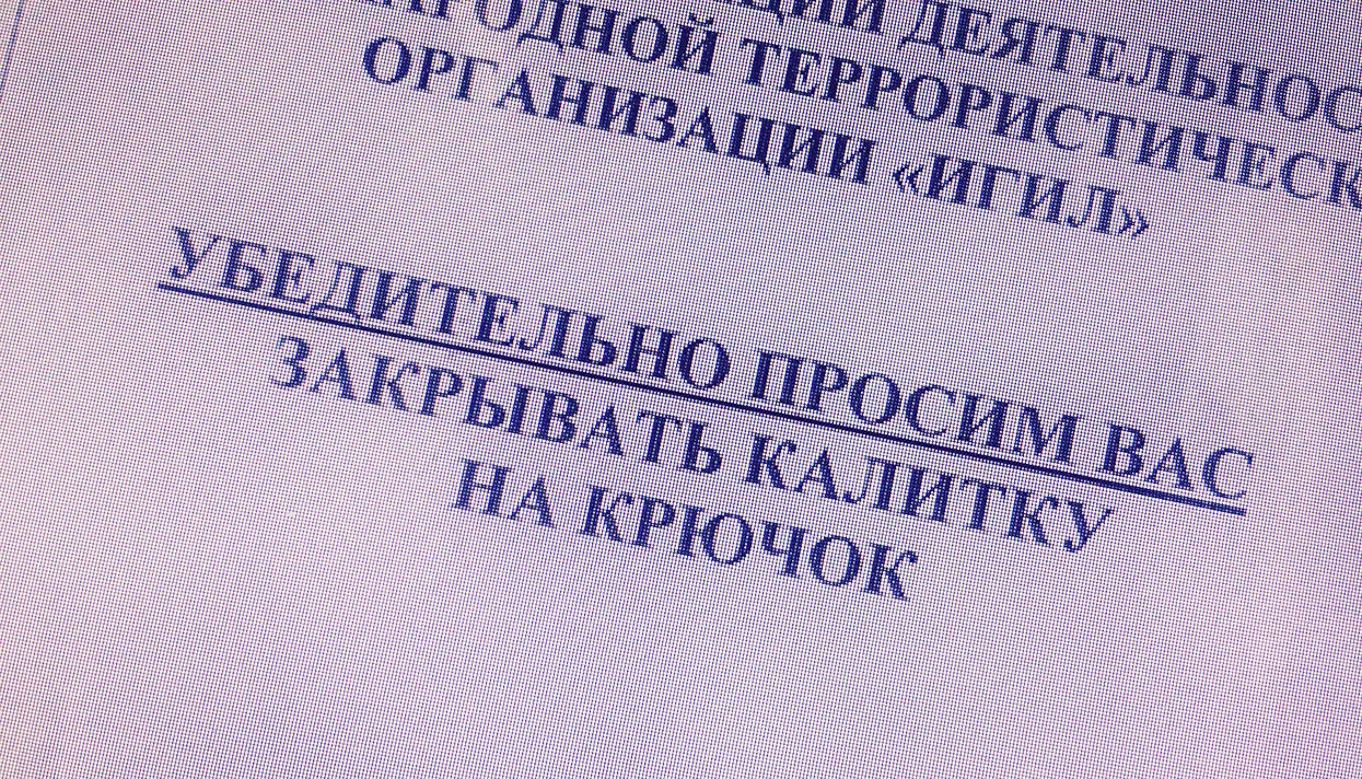 В соцсетях появилась фотография объявления с просьбой закрывать на крючок калитку на территорию детского сада. Дополнительные меры безопасности в учреждении ввели в связи с активизацией «Исламского государства» (террористической организации, запрещенной в России).