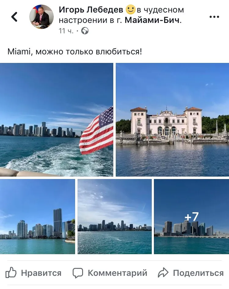 Спор произошел из-за поста Лебедева из Флориды, опубликованного вечером 28 ноября по Москве. Сын лидера ЛДПР опубликовал 10 фотографий и видео из Майами с комментарием: «Miami, можно только влюбиться!» Неверов, который сам находится под санкциями США и посетить Майами не может, пришел в комментарии и напомнил коллеге, что сейчас идет региональная неделя: «Майами не наш регион, это далеко от Хабаровска, Владимира и Смоленска. Вы здесь с Владимиром Вольфовичем нужнее».