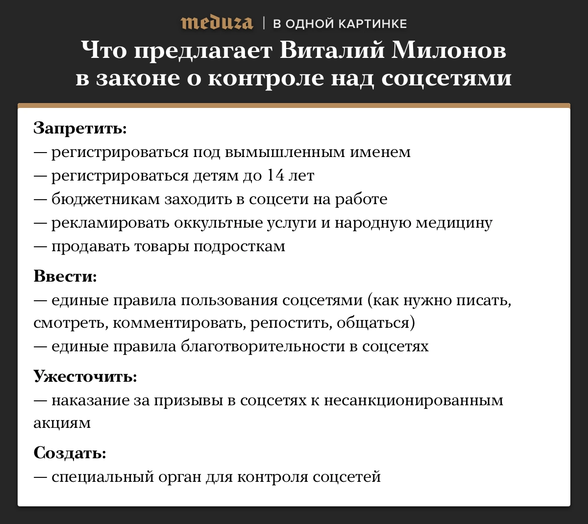 Виталий Милонов предложил ввести контроль над соцсетями. Что он хочет запретить — в одной картинке