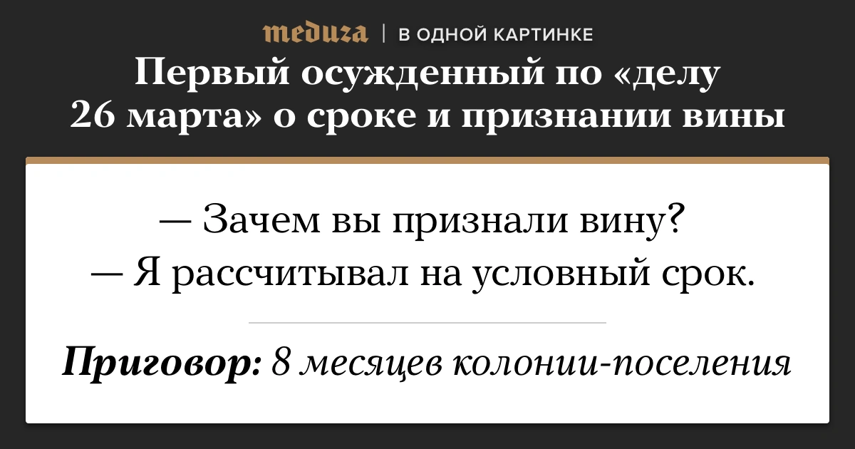 Первый осужденный по «делу 26 марта» — о том, зачем он признал вину. Цитата
