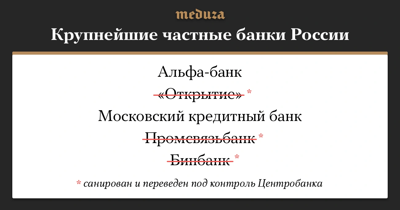 Центробанк взял под контроль крупнейшие частные банки России. Уже три из пяти
