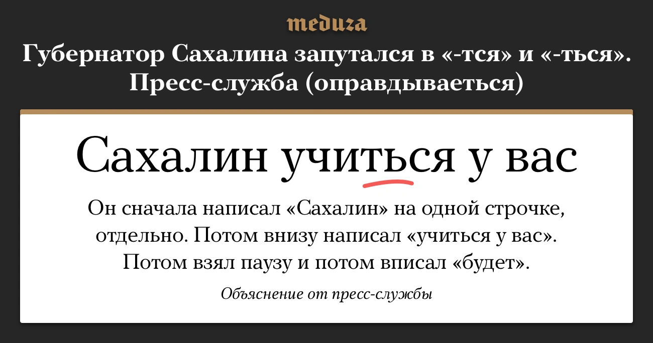 Глава Сахалина запутался в «-тся» и «-ться». Пресс-служба (оправдываеться)