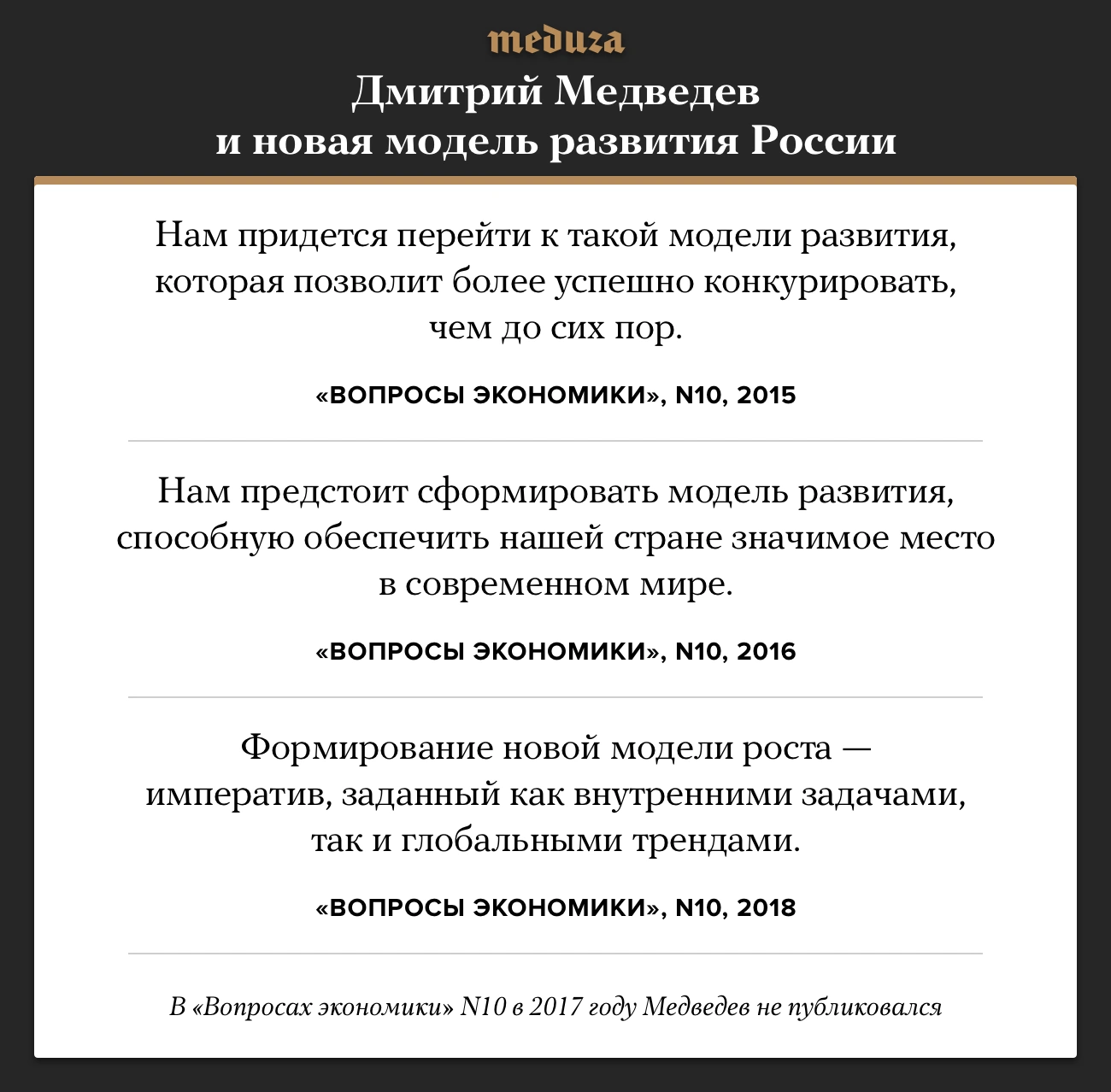 Дмитрий Медведев — о модели роста для экономики России. Три цитаты разных лет