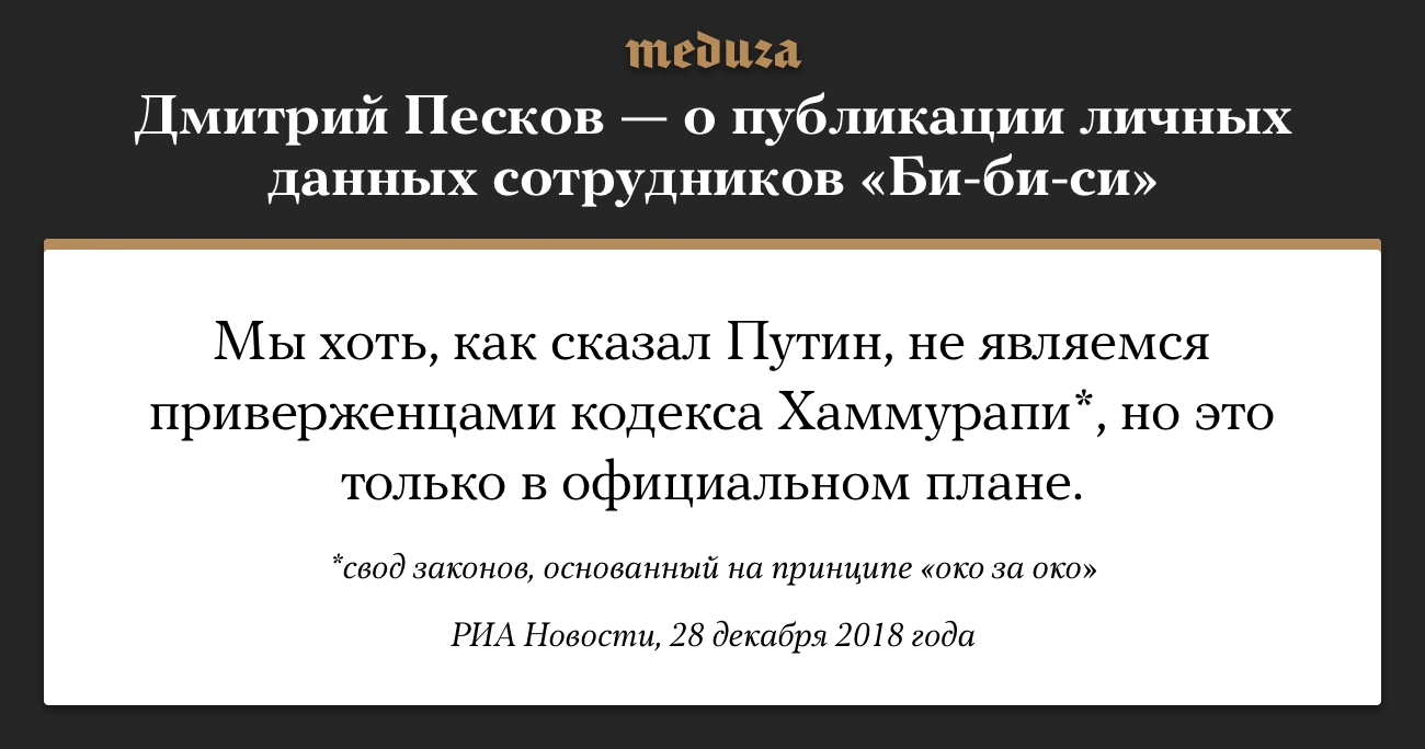 Кремль против принципа «око за око» — но не в случае с публикацией данных журналистов «Би-би-си». Цитата