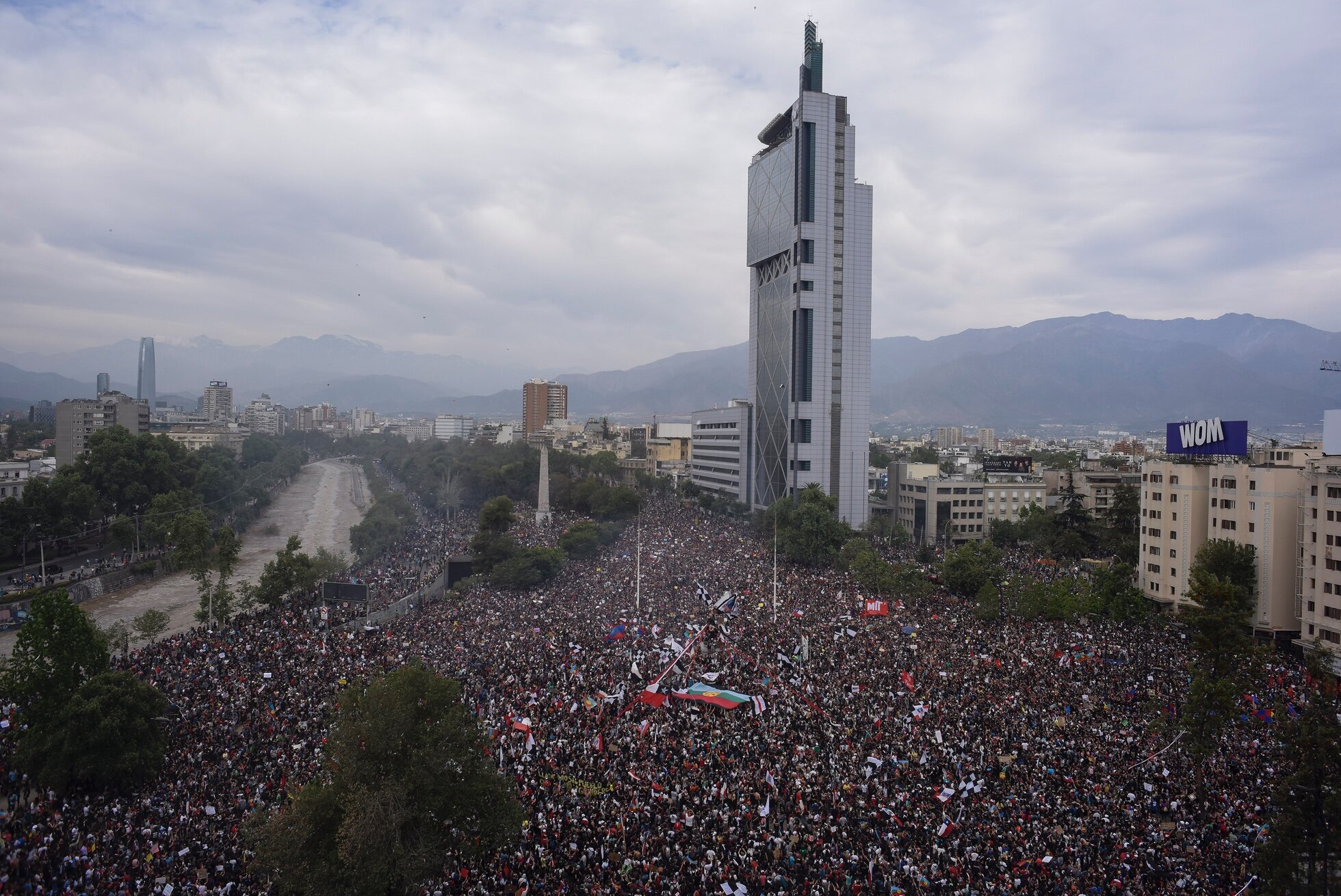 25 октября на митинг в Сантьяго — столице Чили — вышли 1,2 миллиона человек. Эта акция стала самой массовой для страны с 1988 года, когда миллион чилийцев присоединились к митингу против тогдашнего правителя Аугусто Пиночета. Нынешние протесты начались 6 октября, после незначительного повышения цен на проезд в общественном транспорте, но их реальной причиной стали структурные проблемы чилийской экономики. Протесты переросли в беспорядки и столкновения с полицией, в которых 18 человек погибли и около двух с половиной тысяч были задержаны. Правительство Чили отменило повышение цен на проезд и пообещало разработать программу экономических реформ, но протесты пока не утихли.
