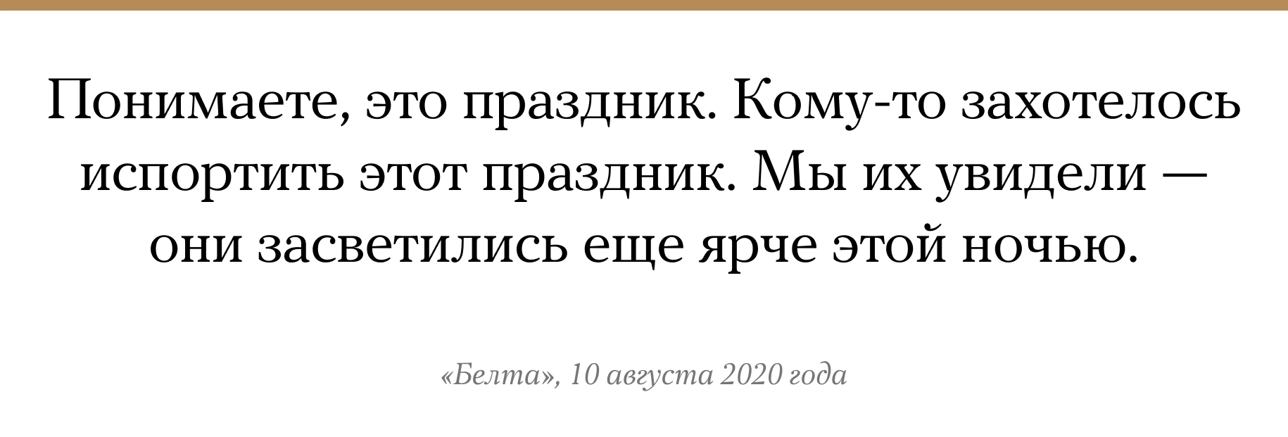 9 августа в Белоруссии прошли выборы президента. По предварительным данным ЦИК, победу на выборах в очередной раз одержал Александр Лукашенко, набрав более 80% голосов. Вечером 9 августа на улицы Минска и других городов на акции протеста вышли тысячи человек. По данным МВД Белоруссии, были задержаны три тысячи демонстрантов, почти 100 человек — участников акций и милиционеров — пострадали в столкновениях. Кандидат от оппозиции Светлана Тихановская объявила себя победителем выборов, заявив о многочисленных нарушениях. Лукашенко, в свою очередь, сообщил, что на участки для голосования люди шли как на праздник — семьями, «с маленьким детишками», а протесты были инициированы из-за границы — «управляли нашими, извините меня, овцами».