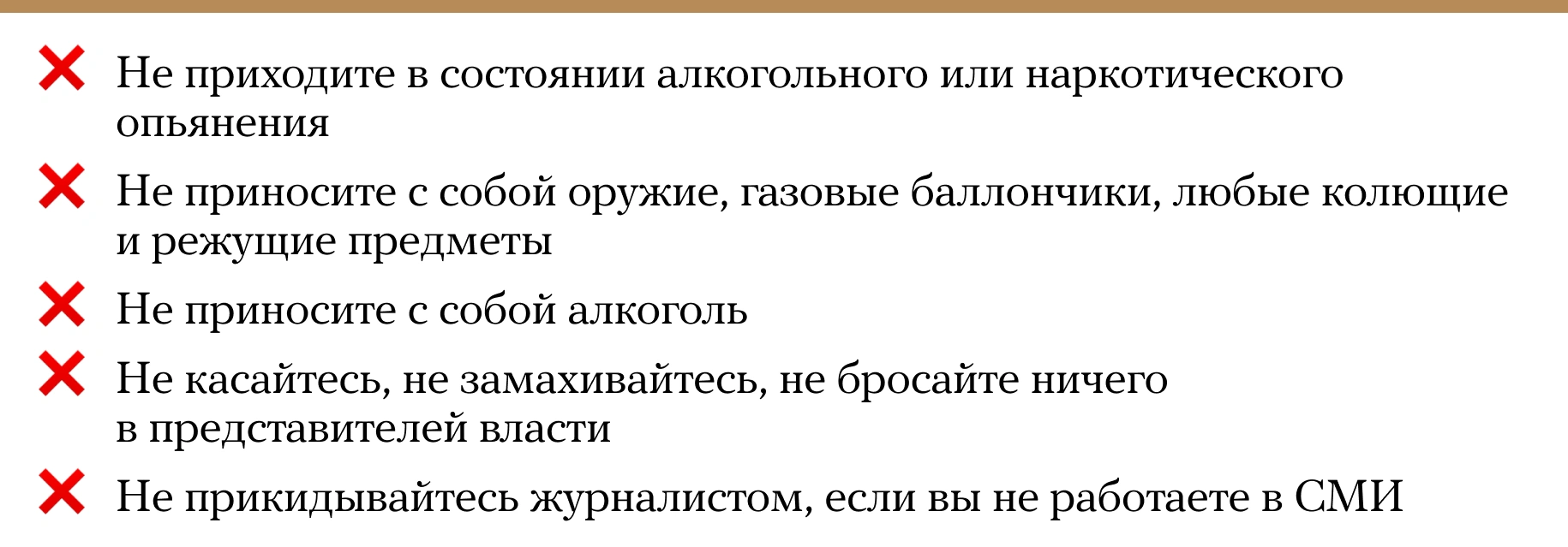Чего точно не нужно делать на мирной акции протеста. В одной картинке