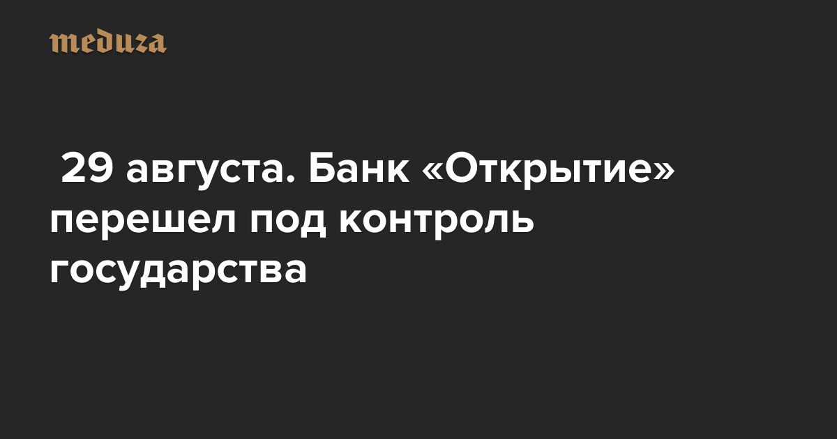 Вечерняя Медуза 29 августа. Банк «Открытие» перешел под контроль государства