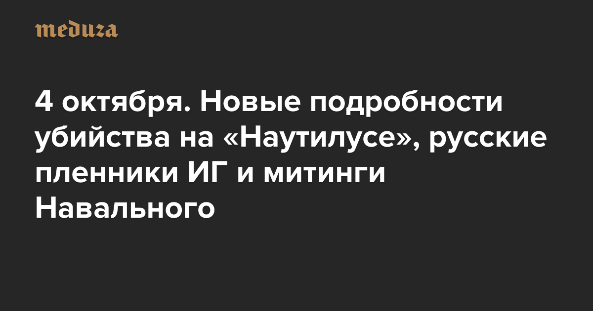 Вечерняя Медуза 4 октября. Новые подробности убийства на «Наутилусе», русские пленники ИГ и митинги Навального