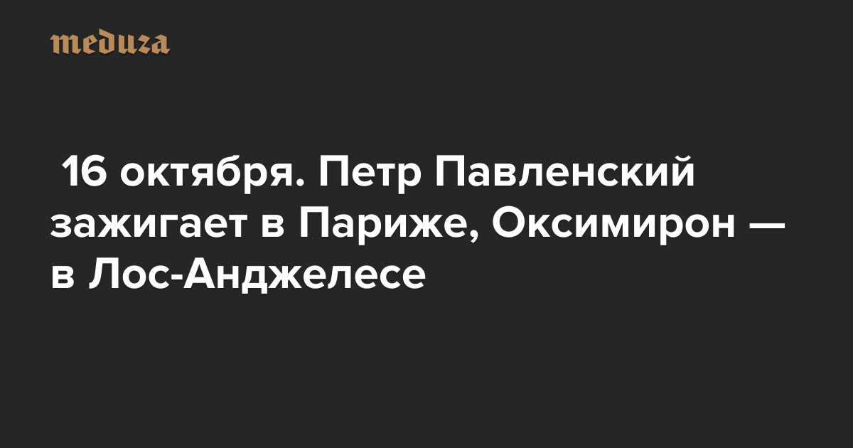 Вечерняя Медуза 🔥 16 октября. Петр Павленский зажигает в Париже, Оксимирон — в Лос-Анджелесе