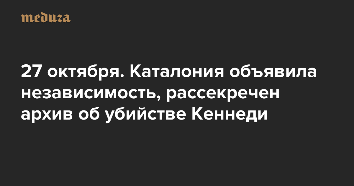 Вечерняя Медуза 27 октября. Каталония объявила независимость, рассекречен архив об убийстве Кеннеди