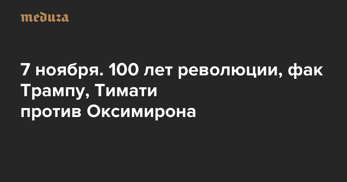 Вечерняя Медуза 7 ноября. 100 лет революции, фак Трампу, Тимати против Оксимирона