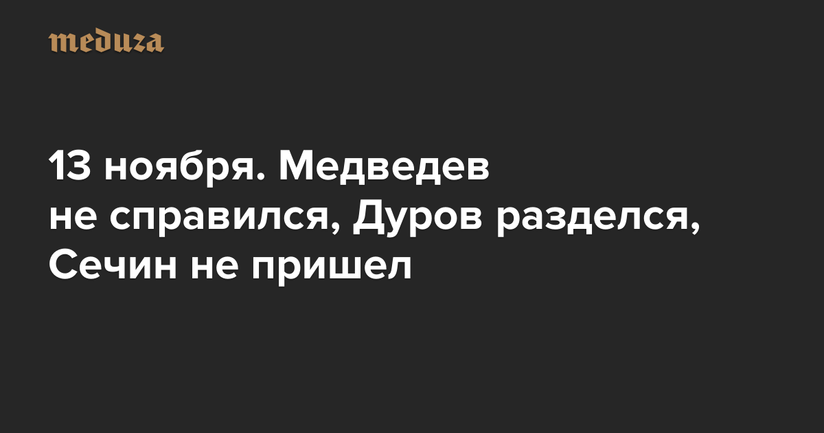 Вечерняя Медуза 13 ноября. Медведев не справился, Дуров разделся, Сечин не пришел