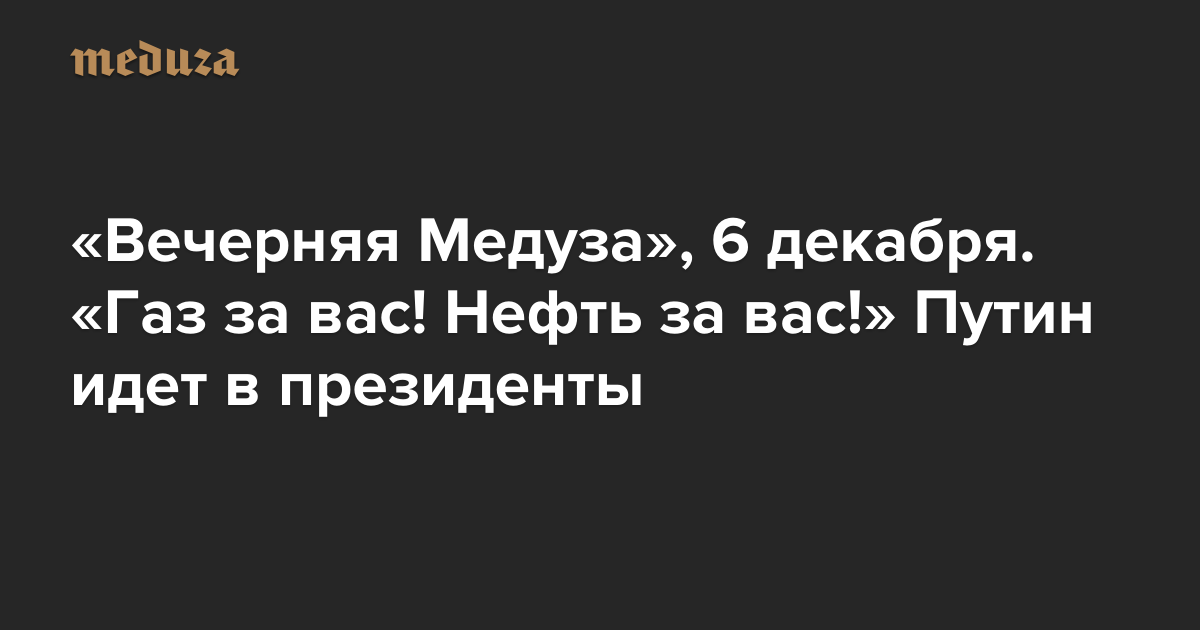 Вечерняя Медуза 6 декабря. «Газ за вас! Нефть за вас!» Путин опять идет в президенты