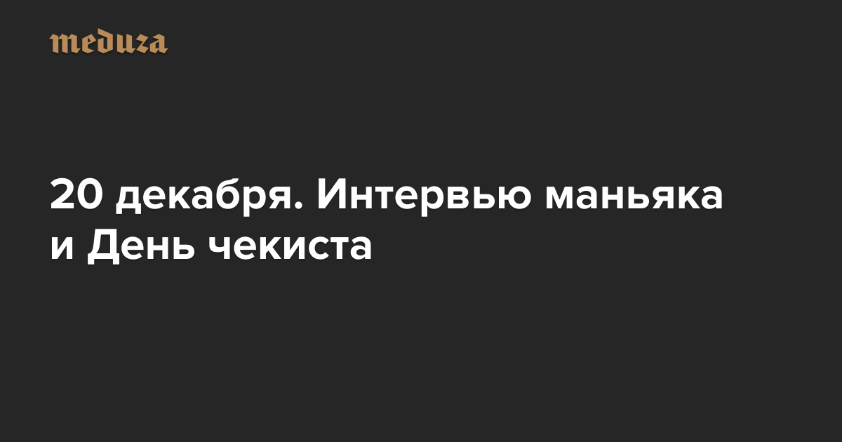 Вечерняя Медуза 20 декабря. Интервью маньяка и День чекиста