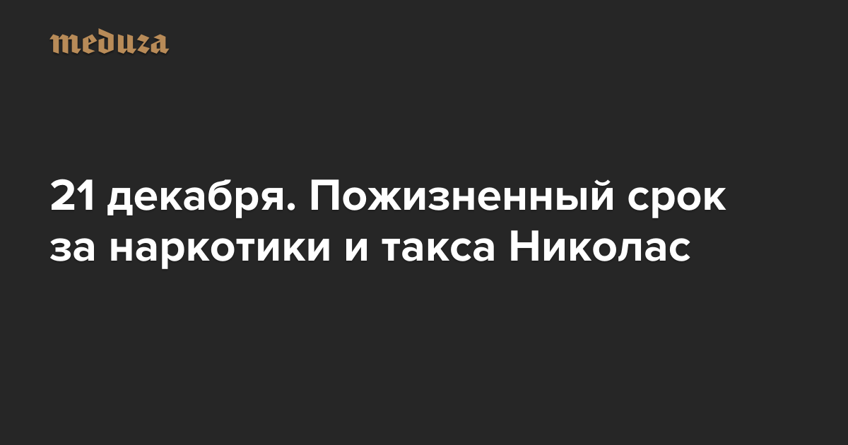 Вечерняя Медуза 21 декабря. Пожизненный срок за наркотики и такса Николас