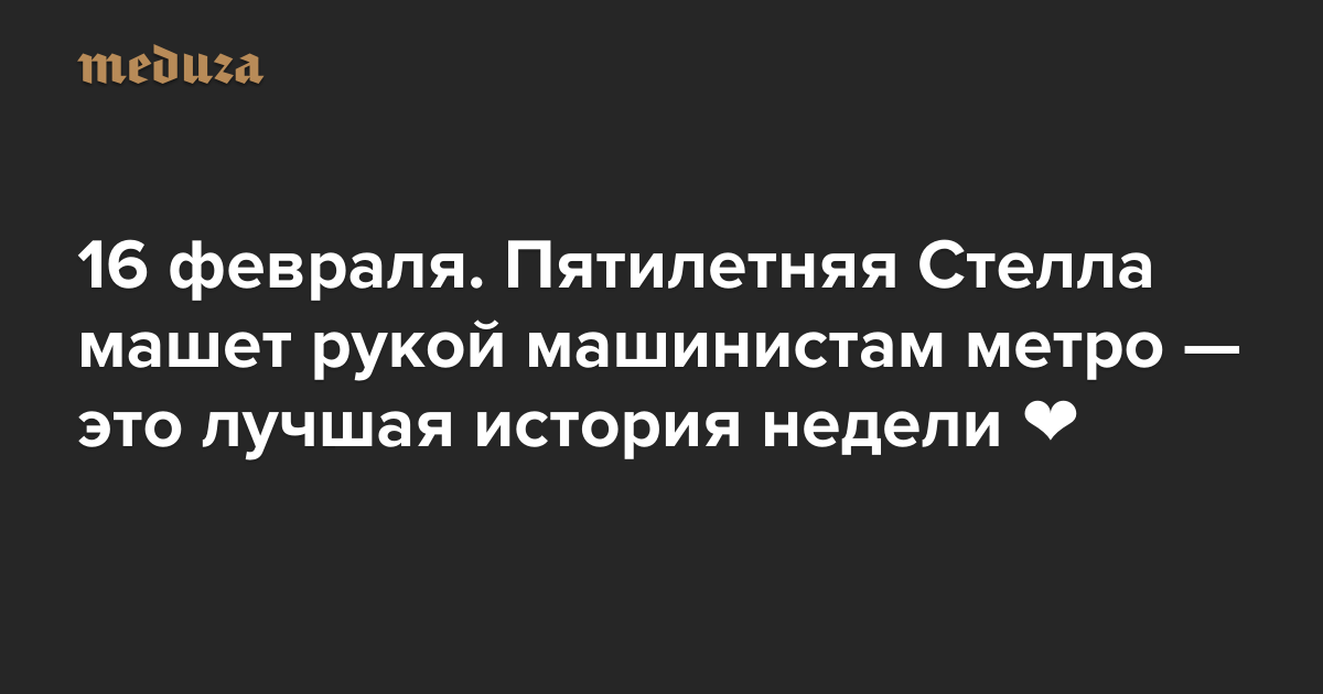 Вечерняя Медуза 16 февраля. Пятилетняя Стелла машет рукой машинистам метро — это лучшая история недели ❤️