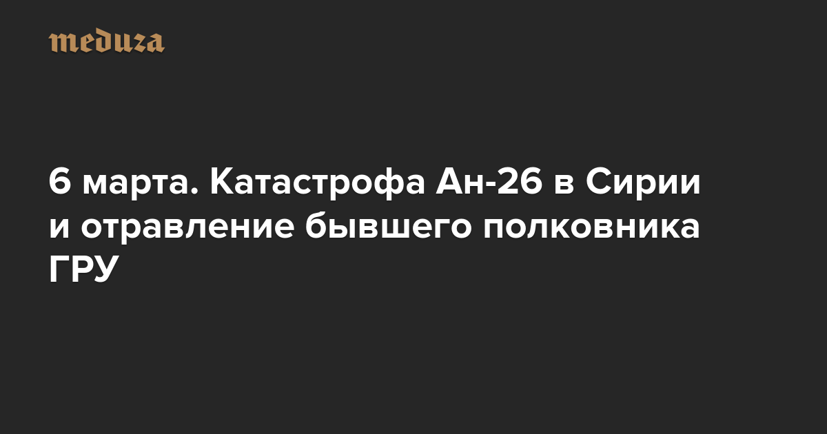 Вечерняя Медуза 6 марта. Катастрофа Ан-26 в Сирии и отравление бывшего полковника ГРУ