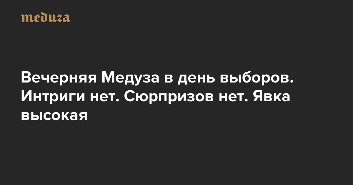 Выборная Медуза Интриги нет. Сюрпризов нет. Явка высокая