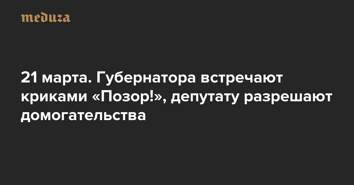 Вечерняя Медуза Губернатора встречают криками «Позор!», депутату разрешают домогательства