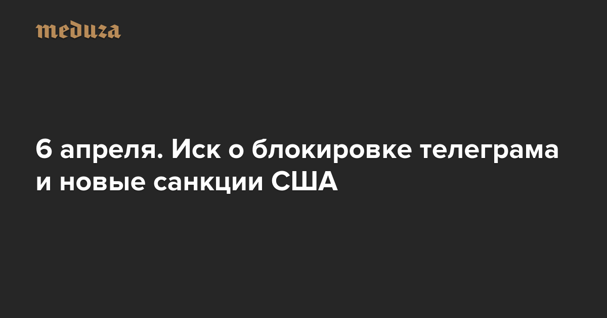 Вечерняя Медуза 6 апреля. Иск о блокировке телеграма и новые санкции США