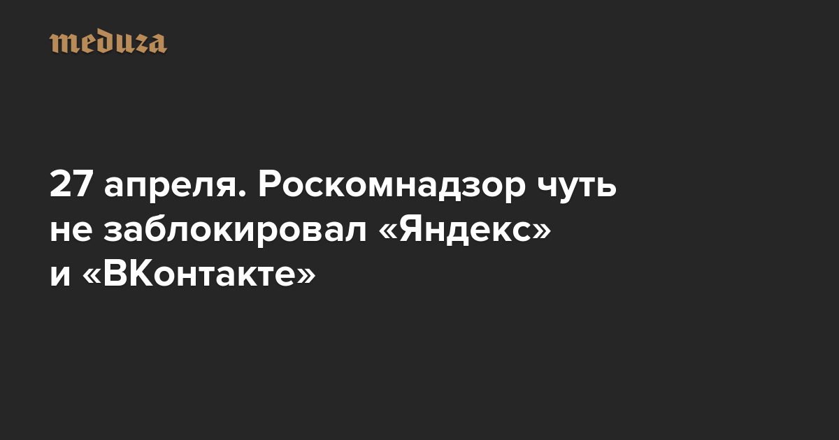 Вечерняя Медуза 27 апреля. Роскомнадзор чуть не заблокировал «Яндекс» и «ВКонтакте»