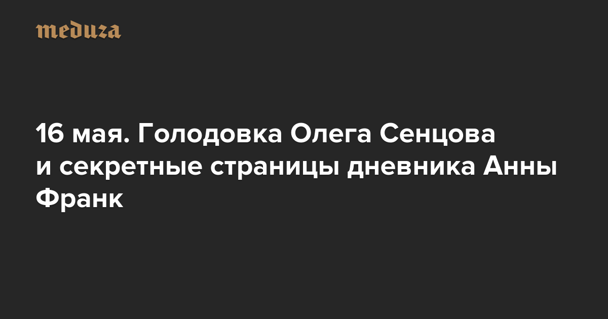 Вечерняя Медуза 16 мая. Голодовка Олега Сенцова и секретные страницы дневника Анны Франк