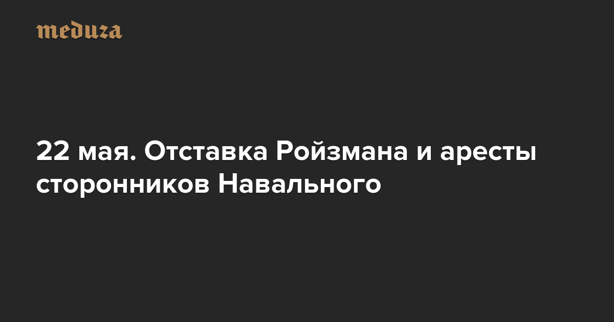 Вечерняя Медуза 22 мая. Отставка Ройзмана и аресты сторонников Навального
