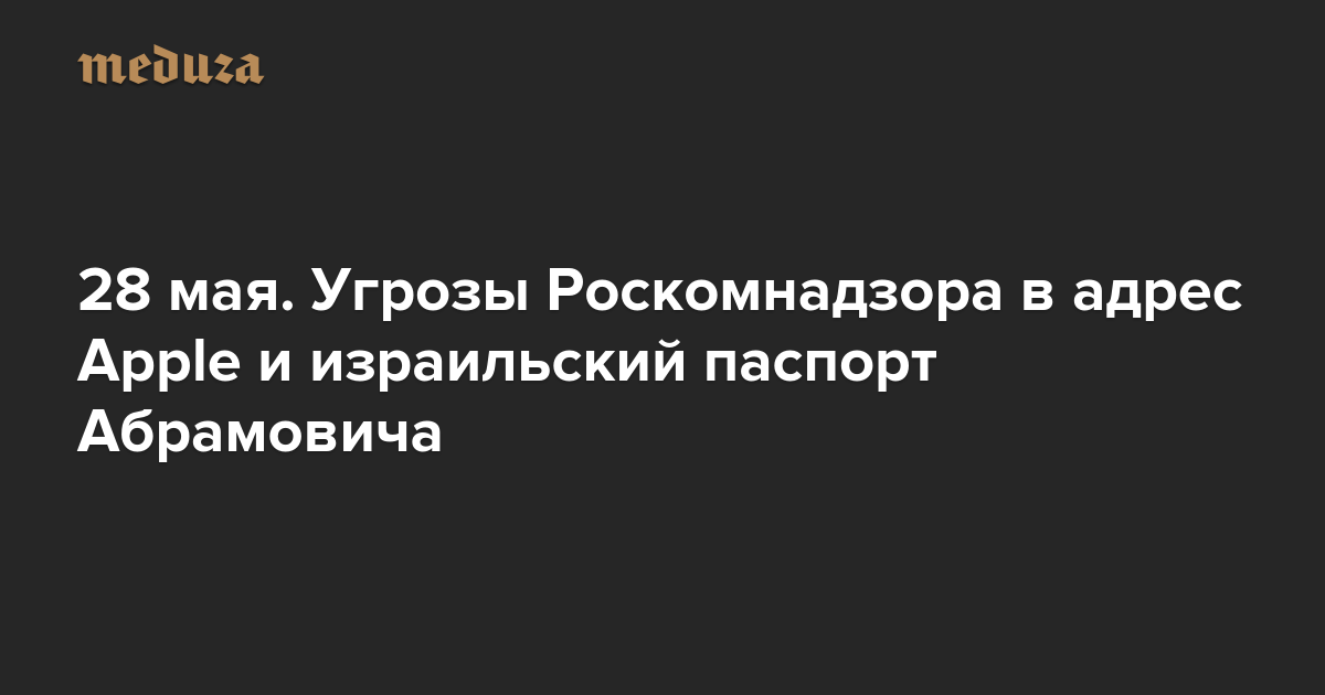 Вечерняя Медуза 28 мая. Угрозы Роскомнадзора в адрес Apple и израильский паспорт Абрамовича