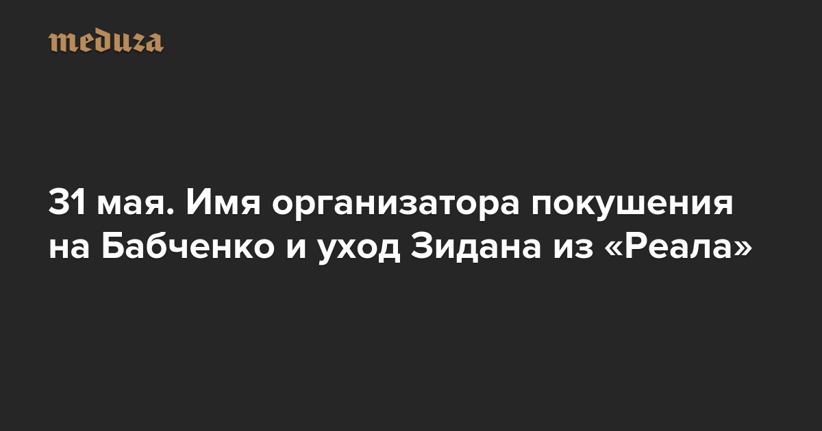 Вечерняя Медуза 31 мая. Имя организатора покушения на Бабченко и уход Зидана из «Реала»
