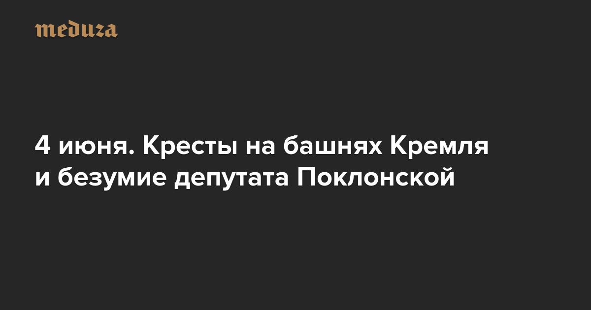 Вечерняя Медуза 4 июня. Кресты на башнях Кремля и безумие депутата Поклонской