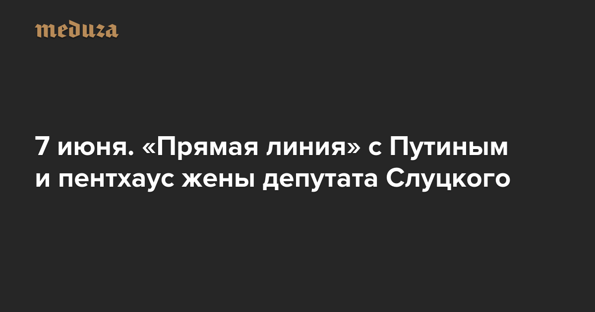 Вечерняя Медуза 7 июня. «Прямая линия» с Путиным и пентхаус жены депутата Слуцкого