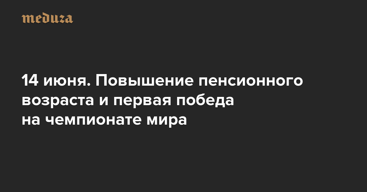 Вечерняя Медуза 14 июня. Повышение пенсионного возраста и первая победа на чемпионате мира