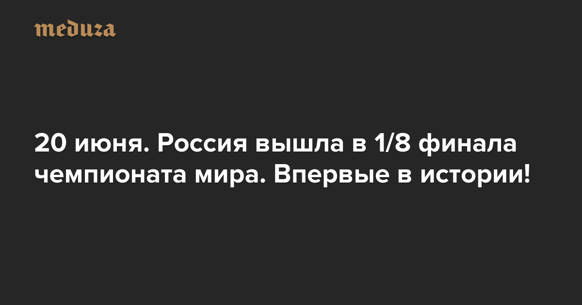 Вечерняя Медуза 20 июня. Россия вышла в 1/8 финала чемпионата мира. Впервые в истории!