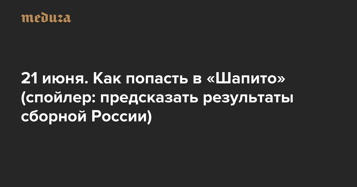 Вечерняя Медуза 21 июня. Как попасть в «Шапито» (спойлер: предсказать результаты сборной России)