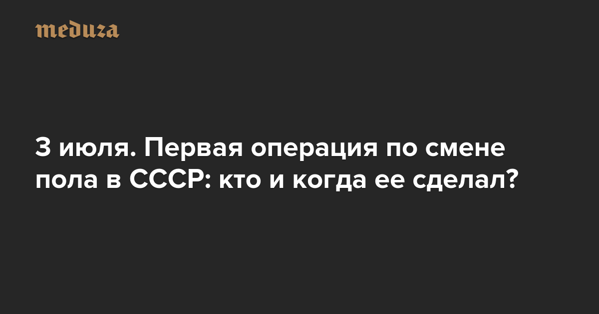 Вечерняя Медуза 3 июля. Первая операция по смене пола в СССР: кто и когда ее сделал?