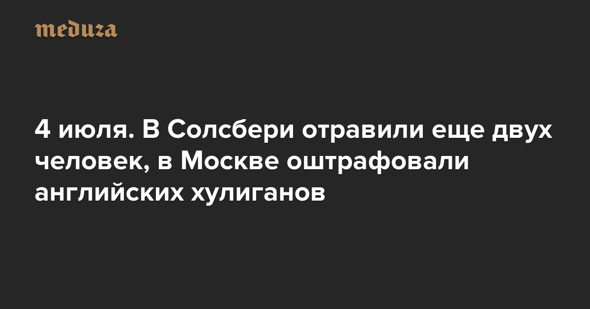 Вечерняя Медуза 4 июля. В Солсбери отравили еще двух человек, в Москве оштрафовали английских хулиганов