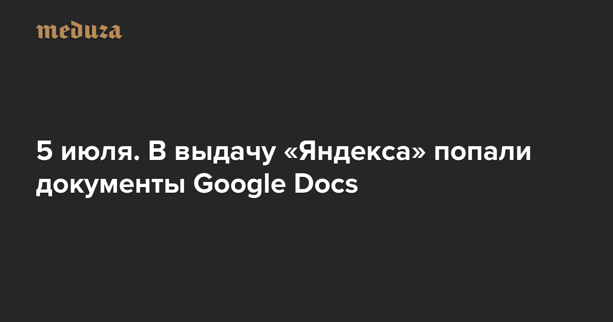 Вечерняя Медуза 5 июля. В выдачу «Яндекса» попали документы Google Docs