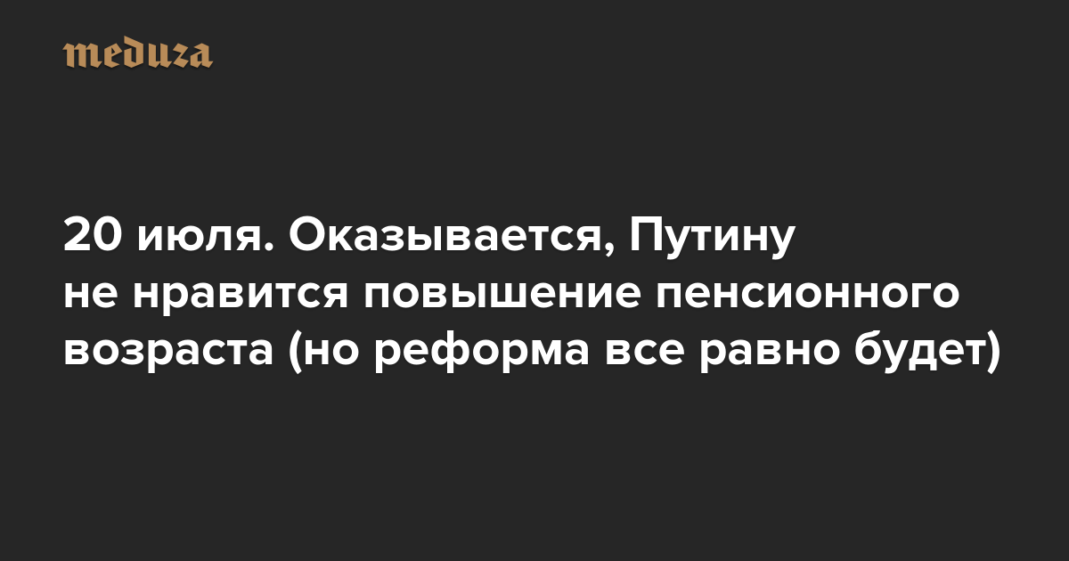 Вечерняя Медуза 20 июля. Оказывается, Путину не нравится повышение пенсионного возраста (но реформа все равно будет)