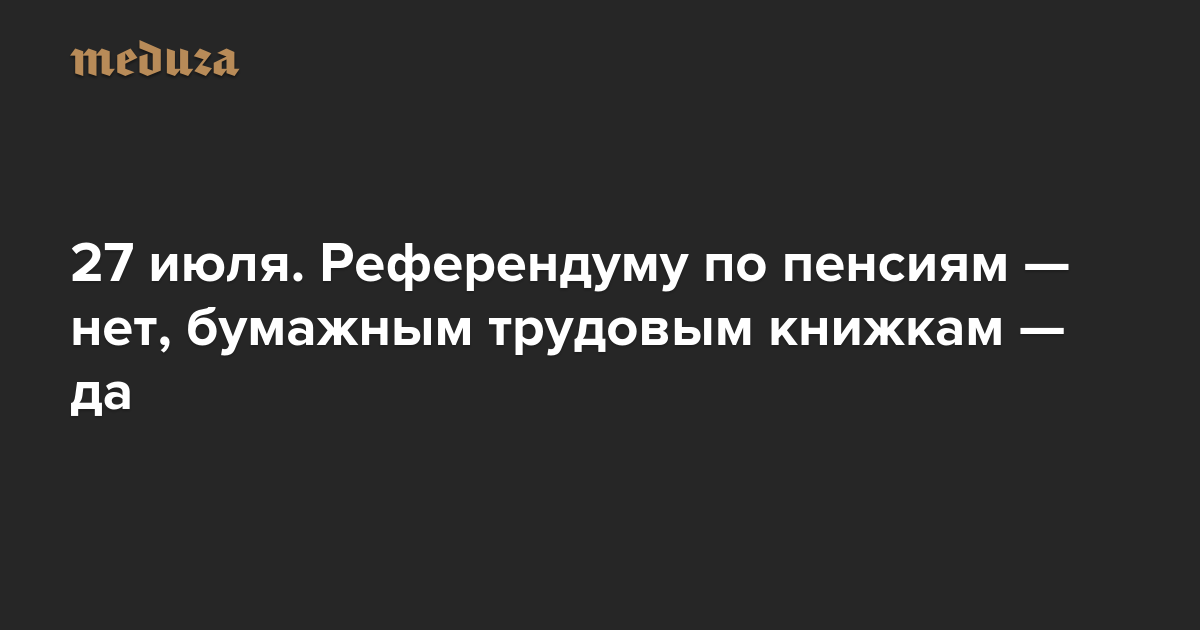 Вечерняя Медуза 27 июля. Референдуму по пенсиям — нет, бумажным трудовым книжкам — да