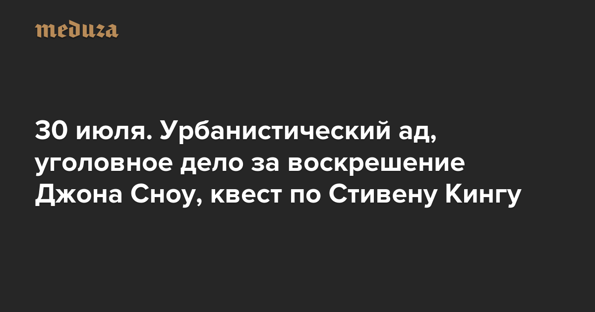Вечерняя Медуза 30 июля. Урбанистический ад, уголовное дело за воскрешение Джона Сноу, квест по Стивену Кингу
