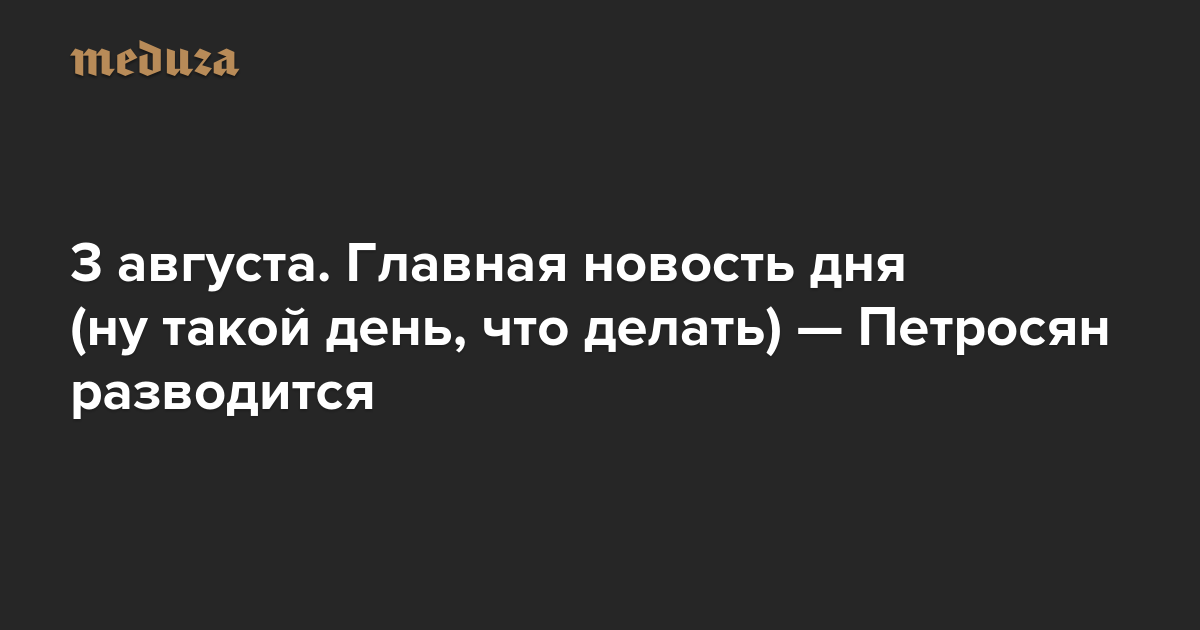 Вечерняя Медуза 3 августа. Главная новость дня (ну такой день, что делать) — Петросян разводится
