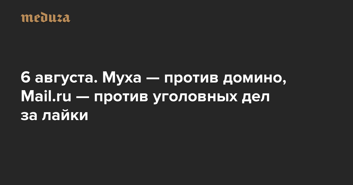 Вечерняя Медуза 6 августа. Муха — против домино, Mail.ru — против уголовных дел за лайки