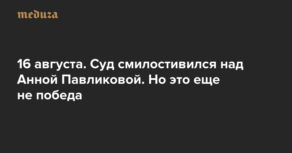 Вечерняя Медуза 16 августа. Суд смилостивился над Анной Павликовой. Но это еще не победа